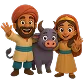 In the bustling harbor of Basra, Sindibad the sailor was preparing his sturdy ship. Princess Yasmin leaned over the pier, curious as always, while their faithful friend Rawi the water buffalo splashed in the shallows.